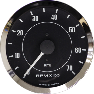 Smiths Classic electric Tachometer. 12 volt, black dial, floodlit illuminated with chrome bezel.