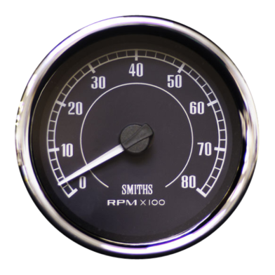 Smiths Classic Flight digital dashboard fit tachometer for heritage, classic or kit cars. Configurable for engines from 1-12 cylinders and most ignition systems. White LED backlighting and chrome 1/2 round bezel. Available in 52mm, 80mm and 100m