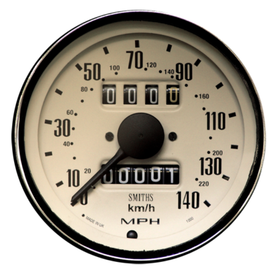 80mm Classic magnolia Speedometer with remote trip. Black print and pointer. Floodlit illumination. Available with Full ‘V’ bezel or IVA (1/2 round bezel) and in MPH or KMH variant.