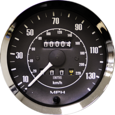 Smiths Classic 100mm (4in) dashboard fit speedometer for classic cars, full range of matching dashboard instruments to return any classic or kit-car dashboard to pristine condition.