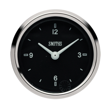 Cobra 52mm electrical analogue time clock with metal case and SMITHS logo. Available in full v or 1/2 round chrome bezel.