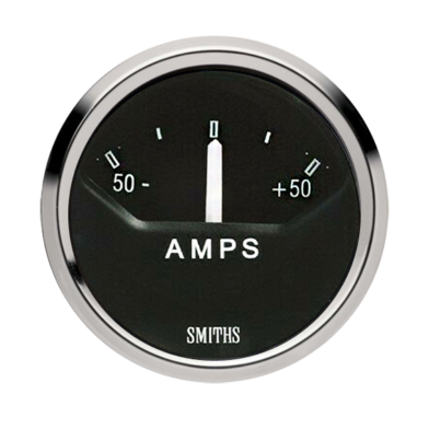 SMITHS brand Cobra 52mm electrical Ammeter. 50-0-50 Amps. Available in full v or 1/2 round chrome bezel.