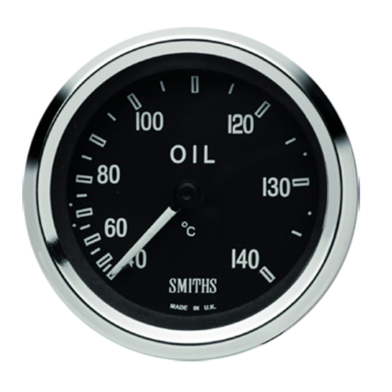 Smiths Cobra 52mm mechanical oil temperature gauge. 0-140°C. 7/8 capillary. Available in full v or 1/2 round chrome bezel.