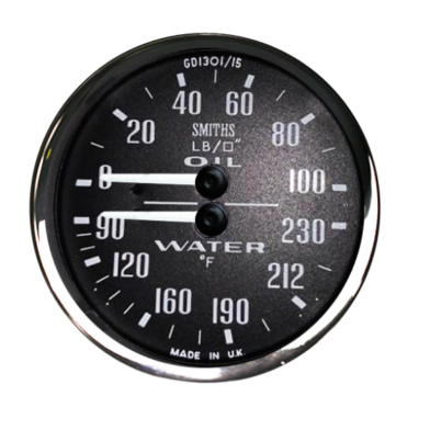 52mm dual oil pressure and water temperature gauge 100 psi, 230°F A2 or K type bulb