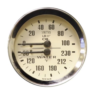 52mm dual oil and water gauge with magnolia dial and black print. 90-230°F 0-100psi.