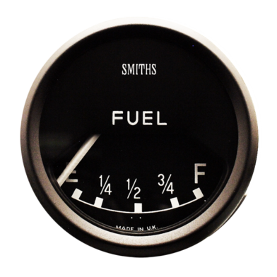 Series 2 late original bi-metal fuel gauge built to the original specification using much of the same tooling. Black dial with full V black or half round semi matt black bezel. Internal illumination.