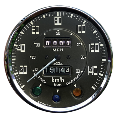 100mm Speedometer with trip remote and floodlit illumination. Available in MPH or KMH scales.