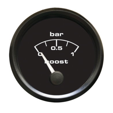 52mm diameter black dial with white print and pointer and full v black bezel. Red illumination. 0-1bar