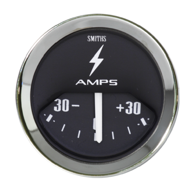 A 52mm classic style ammeter for the original Mk1 Mini. Available in black or magnolia dial with chrome full ‘V’ bezel.