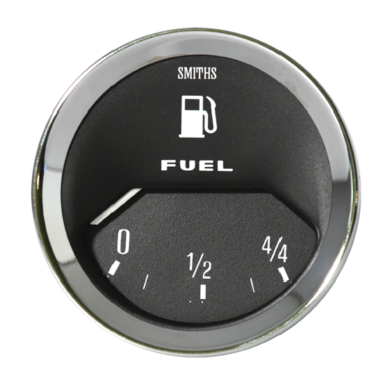 A 52mm classic style fuel level gauge for the original Mk1 Mini. Available in black with 1/2 ‘V’ chrome bezel and printed fuel symbol on dial or magnolia with full ‘V’ chrome bezel (no fuel symbol). White internal illumination. 10 volts. anti-clockwise Scale 0 – 1/2 – 4/4