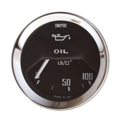 Smiths 52mm oil temperature gauge 100psi. Available in black dial with 1/2 ‘V’ chrome bezel or magnolia dial with full ‘V’ chrome bezel. White internal illumination