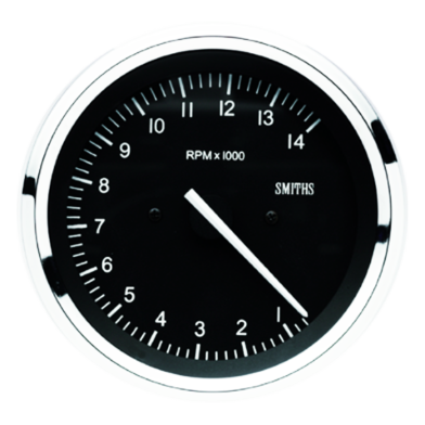 Classic styled motorsport 80mm tachometer with a full ‘V’ or 1/2 round chrome bezel. White print on black dial. Linear scale.