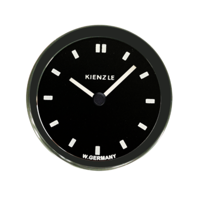 Triumph Stag mark2 52mm analogue clock with centre reset, black dial and white bold print. Half ‘V’ chrome and black bezel.