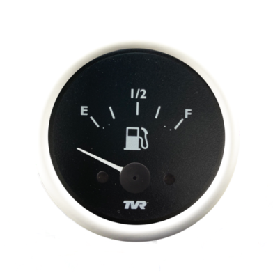12 Volt 52mm fuel gauge 1/2 round aluminium bezel. Available with Black, Magnolia, Mint Green or Cirrus White bezel