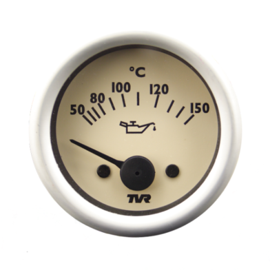 Oil temperature indicator available with black, magnolia, cirrus white or mint green dial. Half round aluminium bezel. 15-150°C