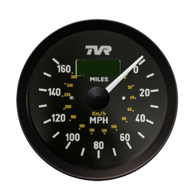 80mm Series 4 Speedometer with black dial and half ‘V’ black bezel. Available in 240kmh and 160mph. White illumination.
