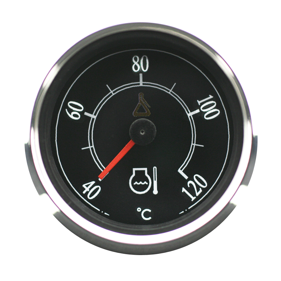 The second instrument designed in the set is a 52mm 12 volt water temperature gauge capable of reading temperatures from 40-120 ° C. The styling is repeated with black dial, white font, full vee stainless steel bezel and distinctive spirit yachts logo. The gauge also features white illumination and waterproof seals.