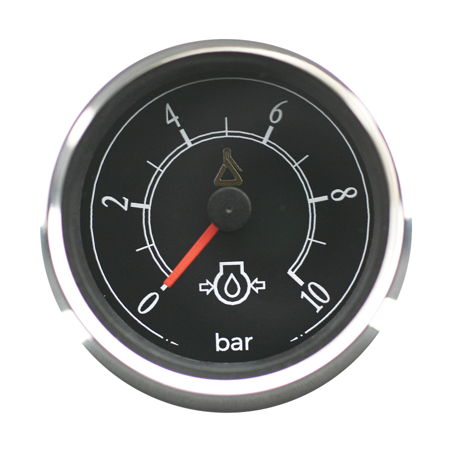 The final gauge is a 12 volt 52mm 0-10 bar oil pressure gauge. The same styling is again present as is the Spirit Yachts trademark logo.