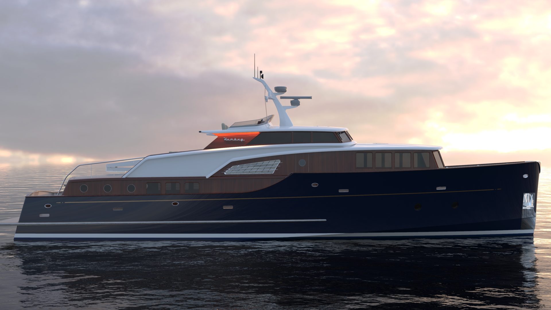 The vessel is a spacious and powerful power yacht which has a range of 1,000 nautical miles at a cruising speed of 18 knots, allowing for the possibility to cross the North Sea without the need to re-fuel. Power is sourced from the Twin MAN i6 800hp engines, meaning a top speed of 25 knots is possible. Below deck there are three cabins, all of which are en-suite, whist a fourth cabin can provide accommodation for optional crew.