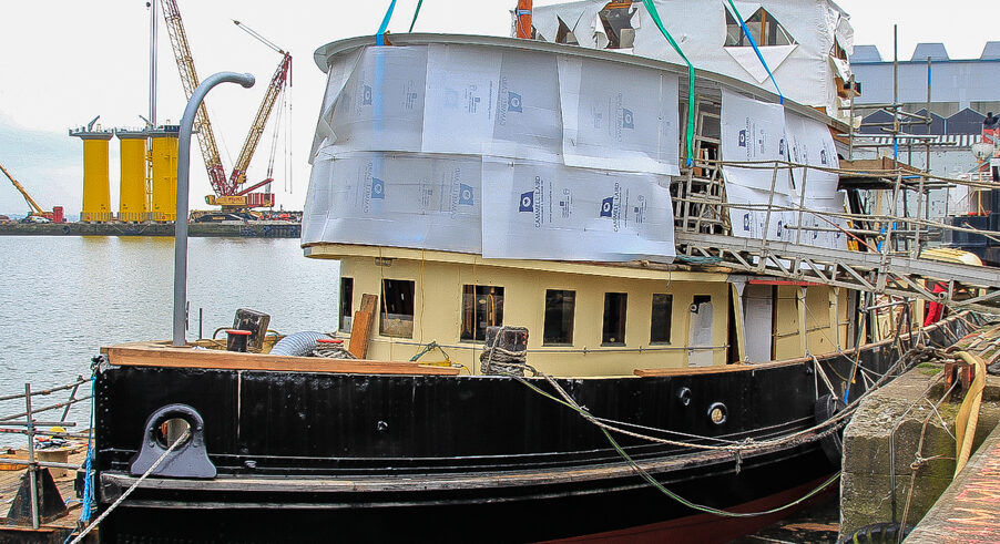 TheĀ Daniel Adamson (also affectionately known as “The Danny” )Ā boasts aĀ remarkable history. Built duringĀ the steam age at Cammell Laird shipyard in Birkenhead in 1903, and then known as theĀ Ralph Brocklebank,Ā she was one of many vessels built to work on the River Mersey and inland waterways. She is unique in being the last surviving steam-powered tug to be built on the Mersey andĀ believed to be the oldest, operational Mersey-built ship anywhere in the world.Ā